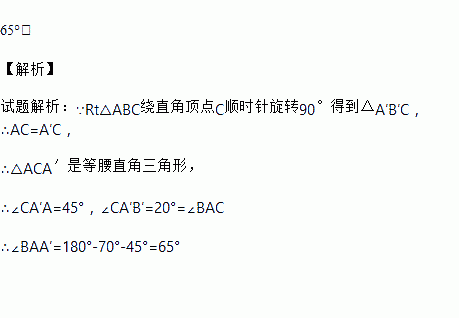 如图,将Rt△ABC绕直角顶点C顺时针旋转90°,得到△A'B'C',连接AA′,若∠1=25°,则∠BAA'的度数是_____.
