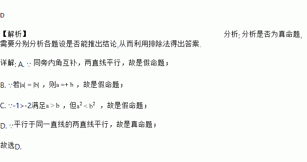 C. 如果,那么 D. 平行于同一直线的两直线平行