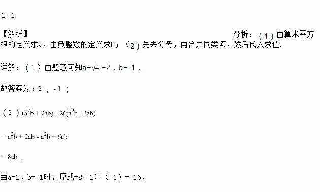 已知a是4的算术平方根,b是最大的负整数.