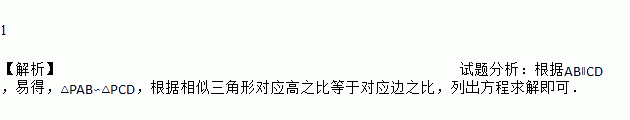 如图,电灯P在横杆AB的上方,AB在灯光下的影子为CD,AB∥CD,AB=2m,CD=6m,点P到CD的距离是3m,则P到 AB的距离是__________m.