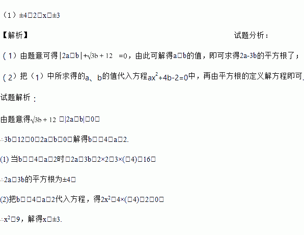 (1)求2a-3b的平方根;