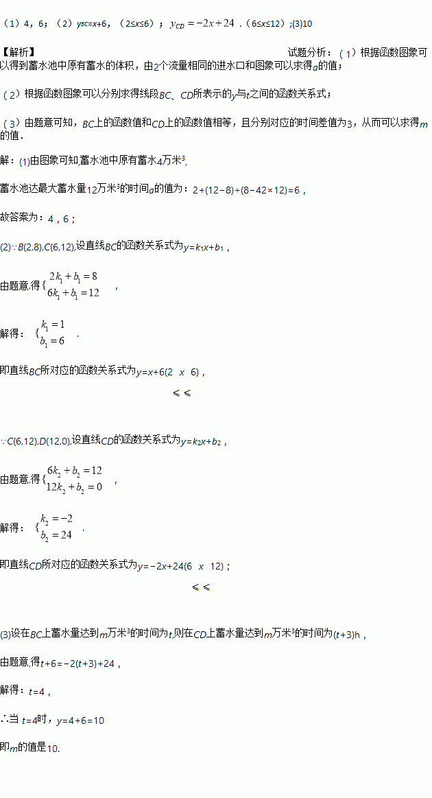 (1)蓄水池中原有蓄水 万米3,蓄水池达最大蓄水量12万米3的时间a的值为 ;