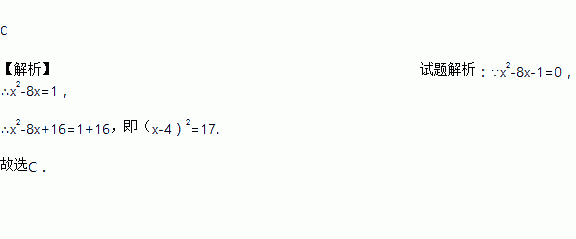 A. (x+4)2=17 B. (x+4)2=15 C. (x-4)2=17 D. (x-4)2=15