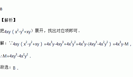 如果一个多项式4x3y-M可以分解因式得4xy(x2-y2+xy),那么M等于( )