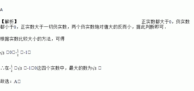 在 -,,-1,0这四个实数中,最大的数是( )