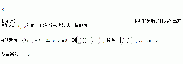 若与|2x-y+3|互为相反数,则x+y的值为_____.