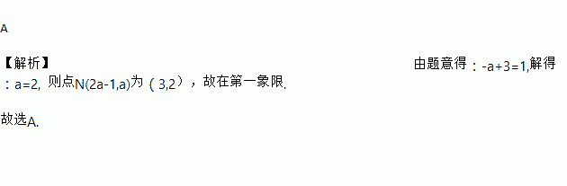 在平面直角坐标系xoy中,点M(a,1)在一次函数y=-x+3的图象上,则点N(2a-1,a)所在的象限是( )