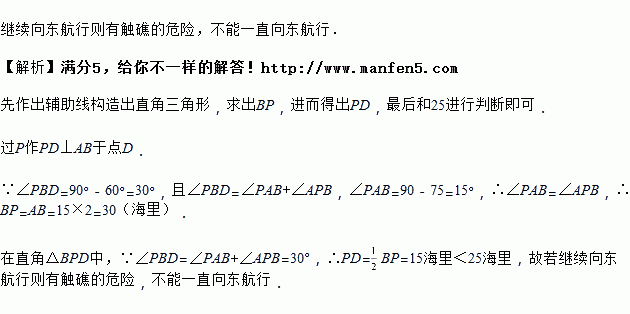 ,若小岛周围海里内有暗礁,问该轮船是否能一直向东航行?![]()