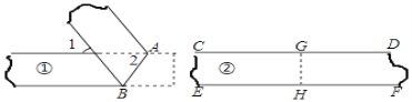 一次数学活动中,检验两条纸带①、②的边线是否平行,小明和小丽采用两种不同的方法如图:小明对纸带①沿AB折叠,量得∠1=∠2=50°;小丽对纸带②沿GH折叠,发现GD与GC重合,HF与HE重合.则下列判断正确的是( )