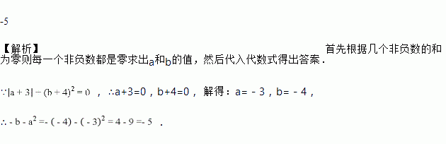 已知|a+3|+(b+4)2=0,则-b-a2=_____.