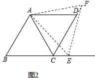 (2)若点E在BC的延长线上,在直线CD上是否存在点F,使△AEF是等边三角形?请证明你的结论(图2备用).