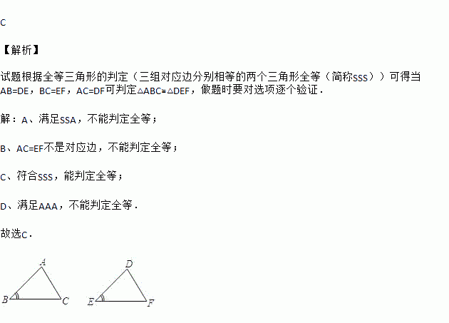 如图所示,下列各组条件中,能判定△ABC≌△DEF的是( )