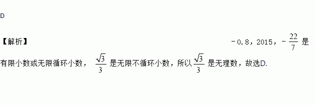 在实数﹣0.8,2015,﹣, 四个数中,是无理数的是( )