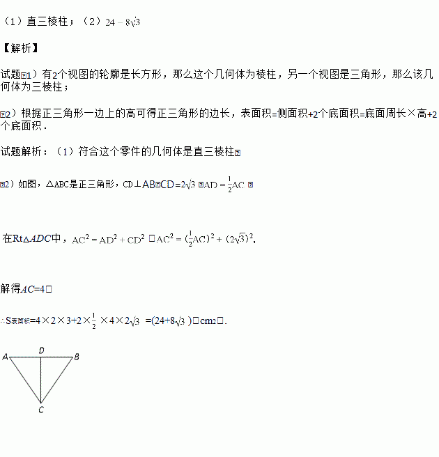 (2)若俯视图中三角形为正三角形,那么请根据图中所标的尺寸,计算这个几何体的表面积(单位:cm2)