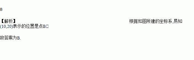 如图,小张从点O出发,先向西走40 m,再向南走30 m到达点M.如果点M的位置用(-40,-30)表示,那么(10,20)表示的位置是( )