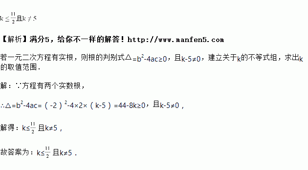 已知关于x的一元二次方程(k﹣5)x2﹣2x+2=0有实根,则k的取值范围为_____.