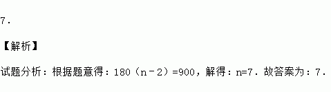 若n边形内角和为900°,则边数n= .