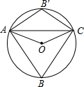 分析:首先根据题意画出图形,由圆周角定理即可求得答案∠ABC的度数,又由圆的内接四边形的性质,即可求得∠AB′C的度数.