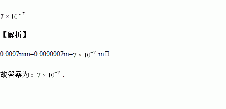 肥皂泡沫的泡壁厚度大约是0.0007mm,则数据0.0007用科学记数法表示为______.