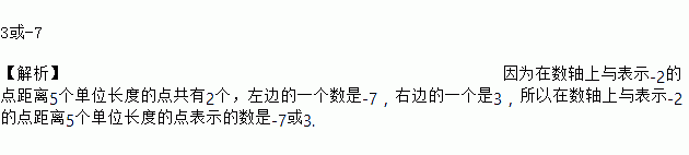在数轴上,与表示-2的点距离为5的数是________.