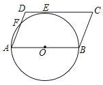 如图,在?ABCD中,AB为⊙O的直径,⊙O与DC相切于点E,与AD相交于点F,已知AB=12,∠C=60°,则的长为______.