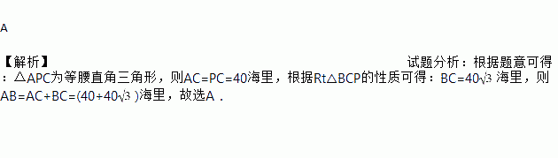 海里的A处,它沿正南方向航行一段时间后,到达位于灯塔P的南偏东30°方向上的B处,则海轮行驶的路程AB为( )海里.