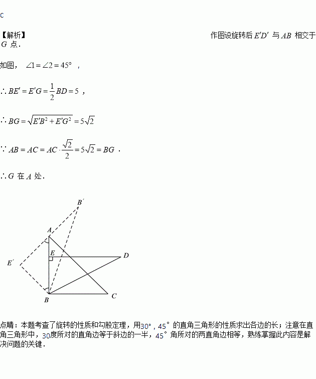 把一副三角板按如图放置,其中, , ,斜边,若将三角板绕点逆时针旋转得到,则点在的( ).