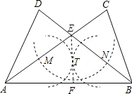 分析:(1)作法:①以E为圆心,适当长为半径画弧别交EA、EB于点M、N;②分别以M、N为圆心,相同的长为半径画弧交于点T;③连接直线ET与AB的交点就是所求的点F.