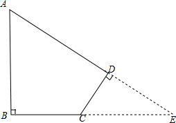 19.四边形ABCD中,∠B=∠D=90°,若DC=2cm,AB=5cm,∠A=60°.求AD、BC的长.分析 首先延长AD,BC交于点E,进而利用含30度角的直角三角形的性质和勾股定理得出EC,DE的长,再利用利用含30度角的直角三角形的性质和勾股定理得出AE,BE的长,再根据线段之间的和差关系得出AD、BC的长.