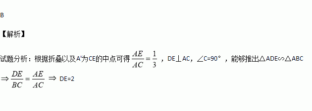 如图,在△ABC中,∠C=90°,BC=6,D,E分别在AB,AC上,将△ABC沿DE折叠,使得点A落在A′处.若A'为CE的中点,则折痕DE的长为