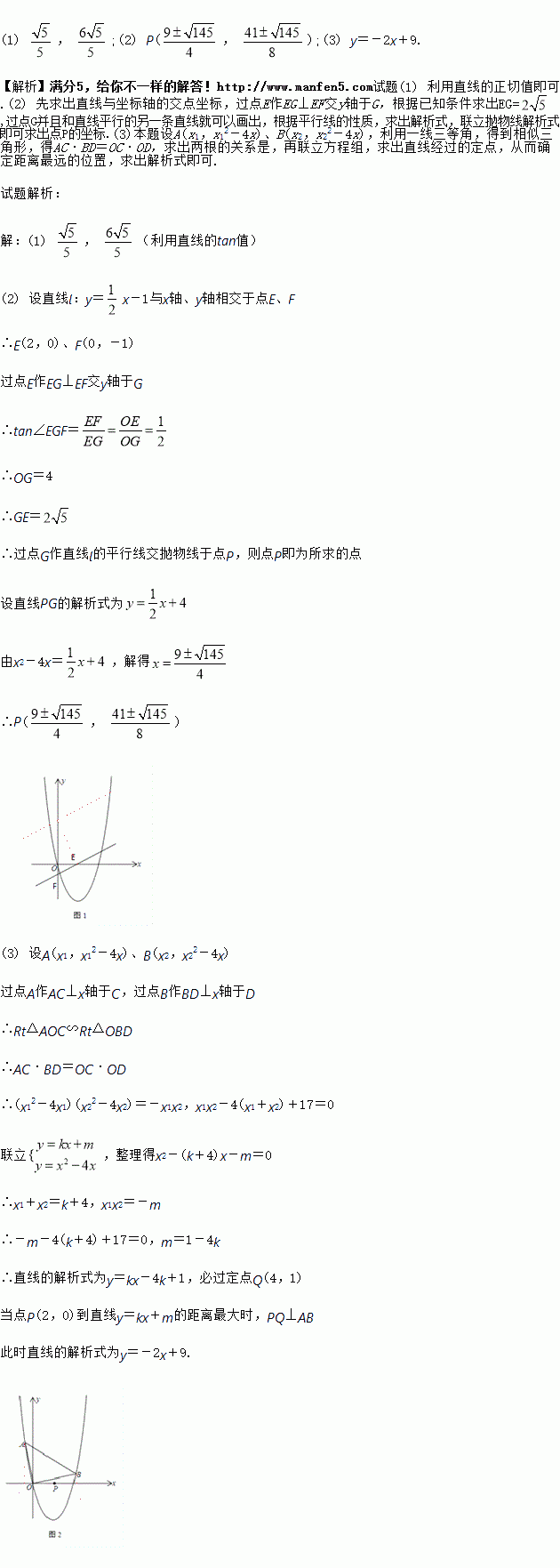 (3) 若直线y=kx+m与抛物线y=x2-4x相交于x轴上方两点A、B(A在B的左边),且∠AOB=90°,求点P(2,0)到直线y=kx+m的距离的最大时直线y=kx+m的解析式.