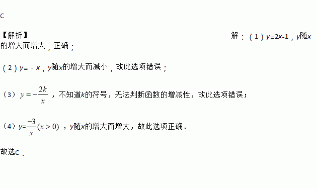 中, y随x增大而增大的有( )