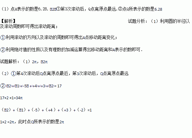 (1)把圆片沿数轴向右滚动1周,点Q到达数轴上点A的位置,则点A表示的数是 。