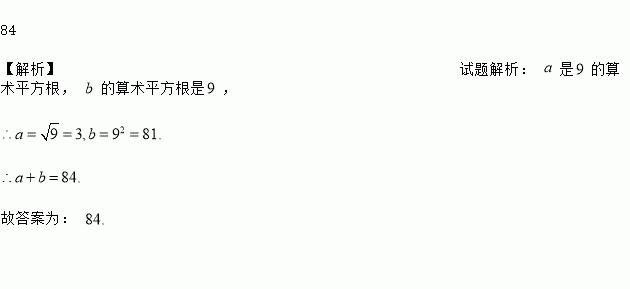 a是9的算术平方根,b的算术平方根是9,则a+b=__________.