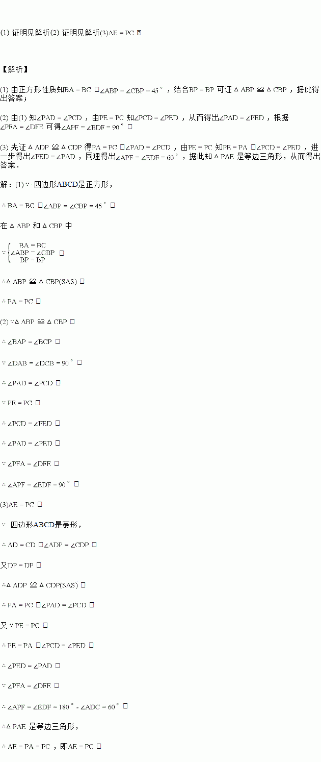 ,连接AE,试探究线段AE与线段PC的数量关系,并给予证明.
