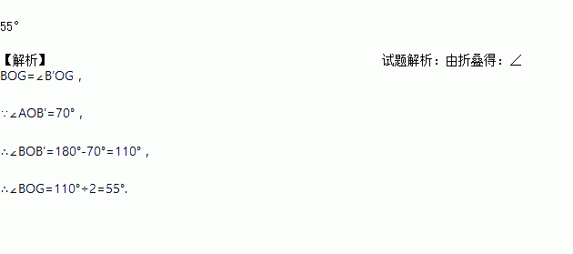 把一张纸各按图中那样折叠后,若得到∠AOB′=70°,则∠BOG=________ .