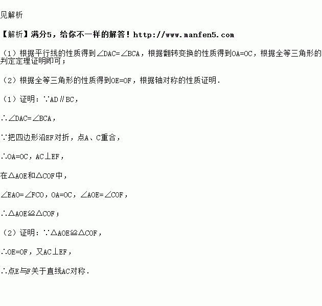 如图,在四边形ABCD中,,把四边形对折,使点A、C重合,折痕EF分别交AD于点E,交BC于点F.