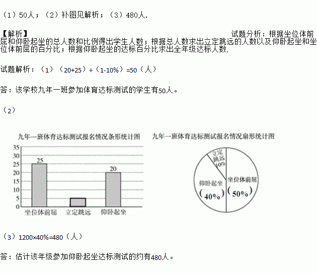 (1)该学校九年一班参加体育达标测试的学生有多少人?
