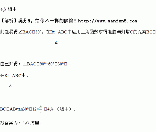 如图,渔船在处看到灯塔在北偏东方向上,渔船向正东方向航行了海里到达处,在处看到灯塔在正北方向上,这时渔船与灯塔的距离是________.