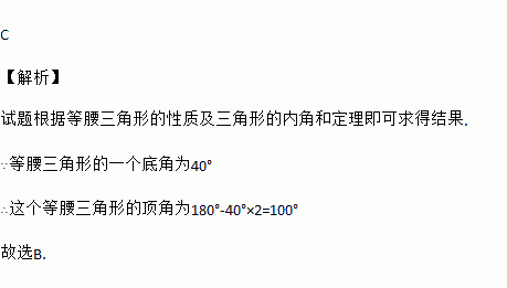 已知等腰三角形的一个内角为40°,则这个等腰三角形的顶角为( )