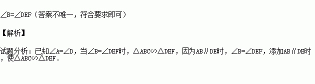 如图,已知∠A=∠D,要使△ABC∽△DEF,还需添加一个条件,你添加的条件是 .(只需写一个条件,不添加辅助线和字母)
