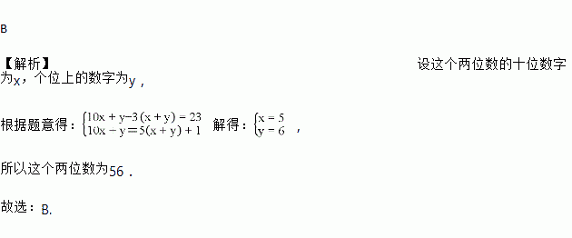 有一个两位数,减去它各位数字之和的3倍,值为23,除以它各位数字之和商是5,余数是1,则这样的两位数( )