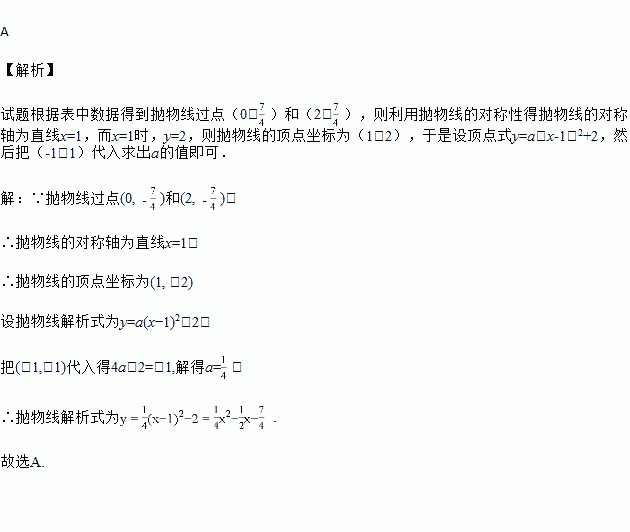 根据下表中的二次函数y=ax2+bx+c的自变量x与函数y的对应值,可判断二次函数的解析式为( )