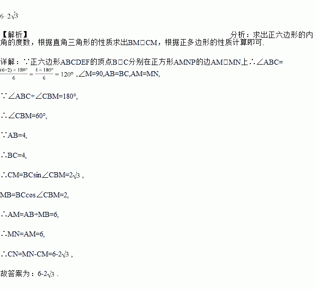 如图,正六边形的顶点分别在正方形的边上.若,则=______________.