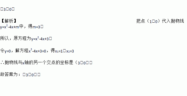 抛物线y=x2-4x+m与x轴的一个交点的坐标为(1,0),则此抛物线与x轴的另一个交点的坐标是____