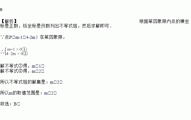 如果点P(m-1,4-2m)在第四象限,那么m的取值范围是( )