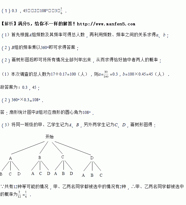 (2)请计算扇形统计图中B组对应扇形的圆心角的度数;