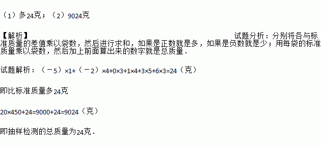 (2)若每袋标准质量为450克,则抽样检测的总质量是多少?