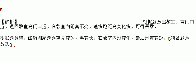 上周周末放学,小华的妈妈来学校门口接他回家,小华离开教室后不远便发现把文具盒遗忘在了教室里,于是以相同的速度折返回去拿,到了教室后碰到班主任,并与班主任交流了一下周末计划才离开,为了不让妈妈久等,小华快步跑到学校门口,则小华离学校门口的距离y与时间t之间的函数关系的大致图象是( )