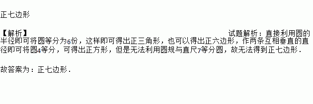 利用等分圆可以作正多边形,只利用直尺和圆规不能作出的多边形是____ .